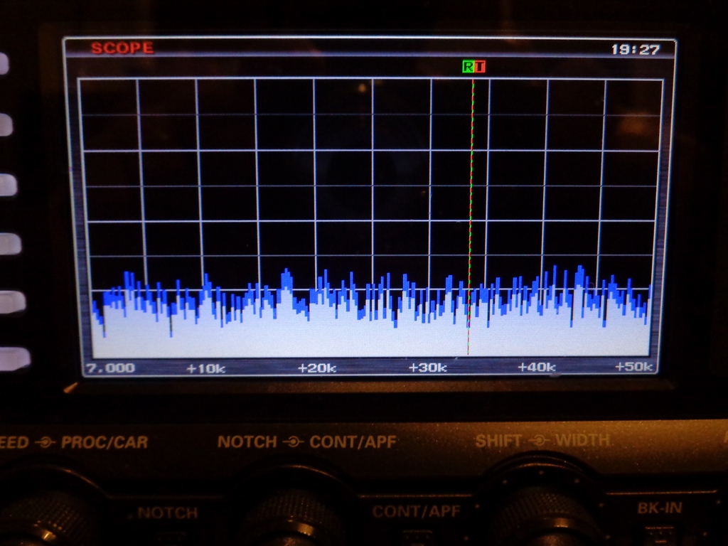 А вот ещё зараза вылезла на 20-ке на прошлой неделе. На этот раз "живая". С таким вот уровнем неторопливо "ползает" по диапазону сверху-вниз круглые сутки. Телеграфный участок утюжит с неумолимостью катка для укладки асфальта ...