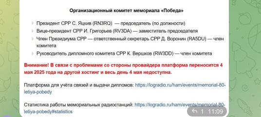 Дипломы операторам мемориальных станций, выполнившим условия получения, доступны в личных кабинетах Лоградио.