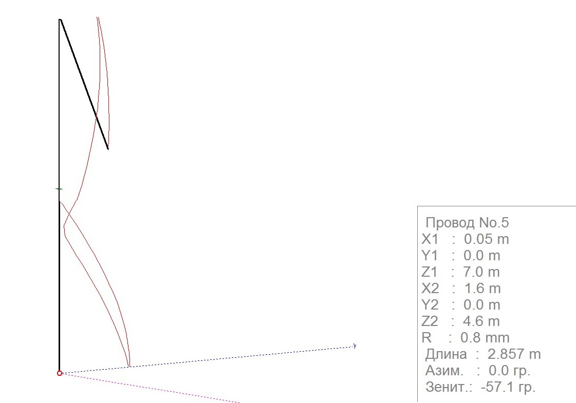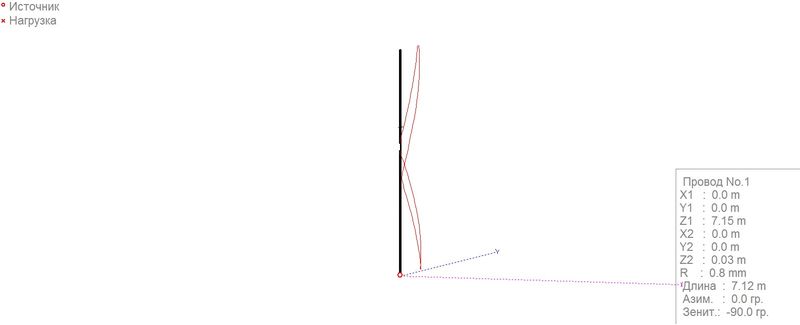 1. Шлейф длиной ¼ лямбда (два нижних куска по 3.5 м).