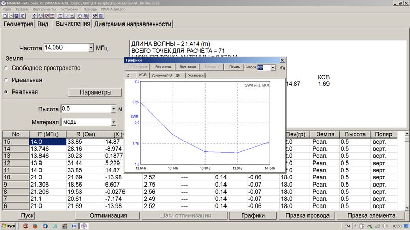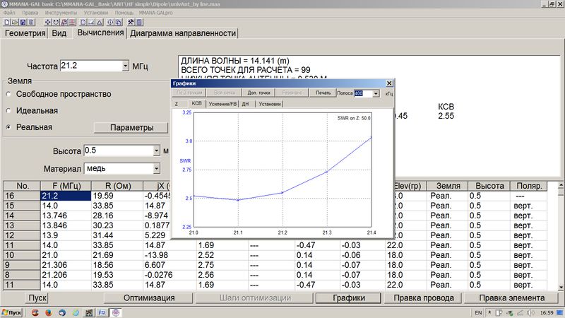 2. Вибратор длиной 7 м (1/2 лямбда)