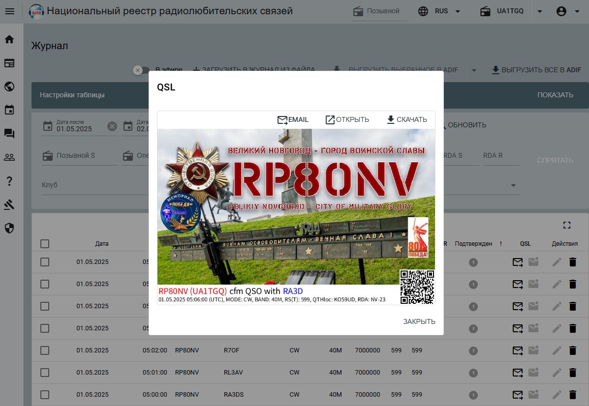 Открыт приём заявок на специальные позвыные сигналы Мемориала "Победа 80" на ресурсе, утверждённом СРР России Лоградио